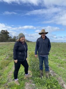 The next day we met with our landholders from the Borden and Cranbrook sites. We know that our landholders already understand the benefits of planting, particularly on salt impacted and degraded land. One of the landholders commented how trees had caused the water table to drop by 3 feet on his site, reducing overall salinity from previous plantings. We were able to observe tree growth from the planting at Cranbrook, which has been particularly wet. The trees have taken advantage of this and we saw some significant growth rates after just one year, both from the stems and the direct seeding that happened in 2020.